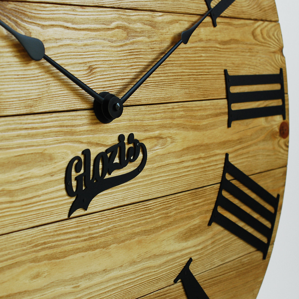 Дерев'яний настінний годинник Glozis – це незвичайний тандем дерева та металу. Основа циферблату настінного годинника виготовлена з натурального дерева, завдяки чому має виразну текстуру, оброблена високоякісною екологічною пропиткою на олійній основі, яка надає колір та благородний сатиновий ефект деревині, захищаючи її від тріщин та вологи. Індикаторами циферблату є цифри, виготовлені з металу з порошковим покриттям. Годинник має безшумний кварцовий механізм. З тильного боку виріб оснащений надійним підвісом. Зверніть увагу! Кожен виріб унікальний і може трохи відрізнятися від представленого на фотографії, тому що кожен фрагмент дерева має свій неповторний малюнок. Годинник виготовляється на замовлення протягом 1-3 днів!