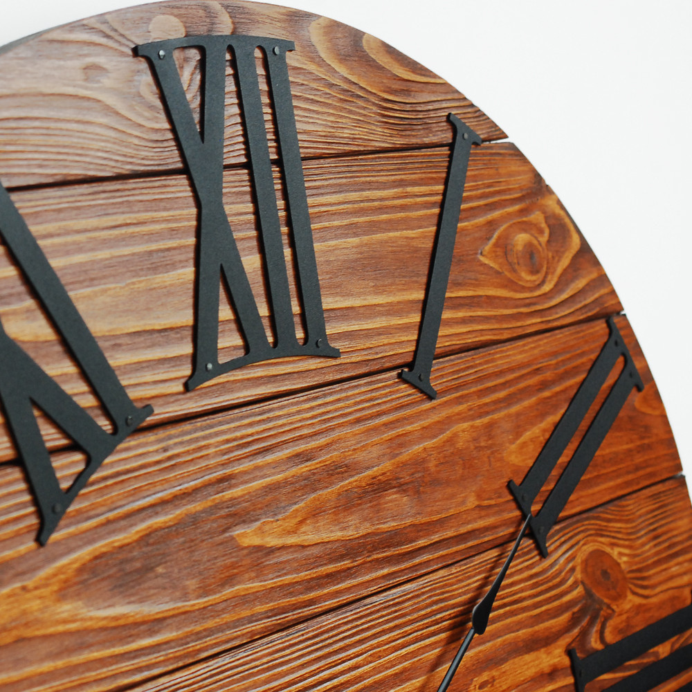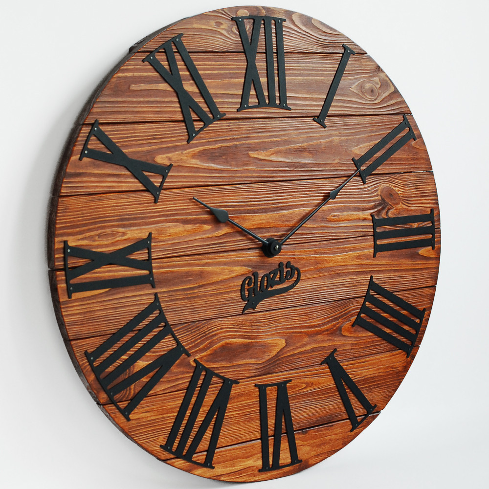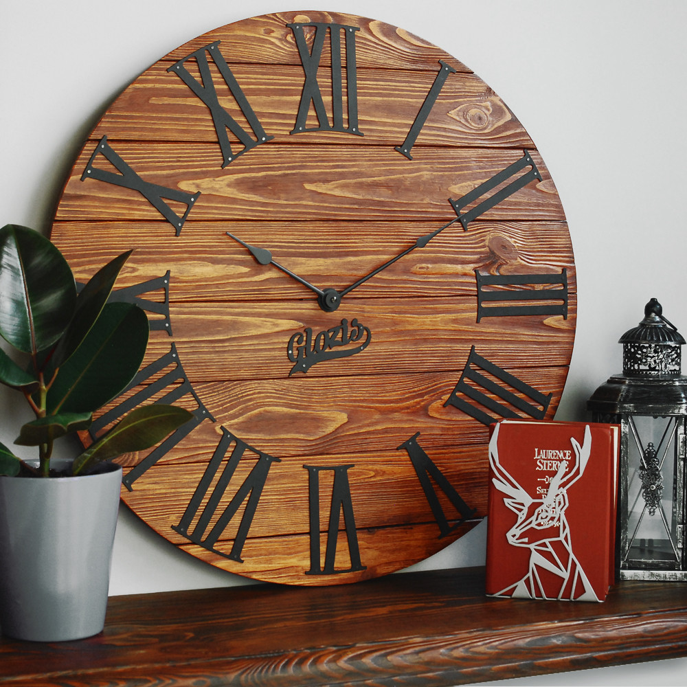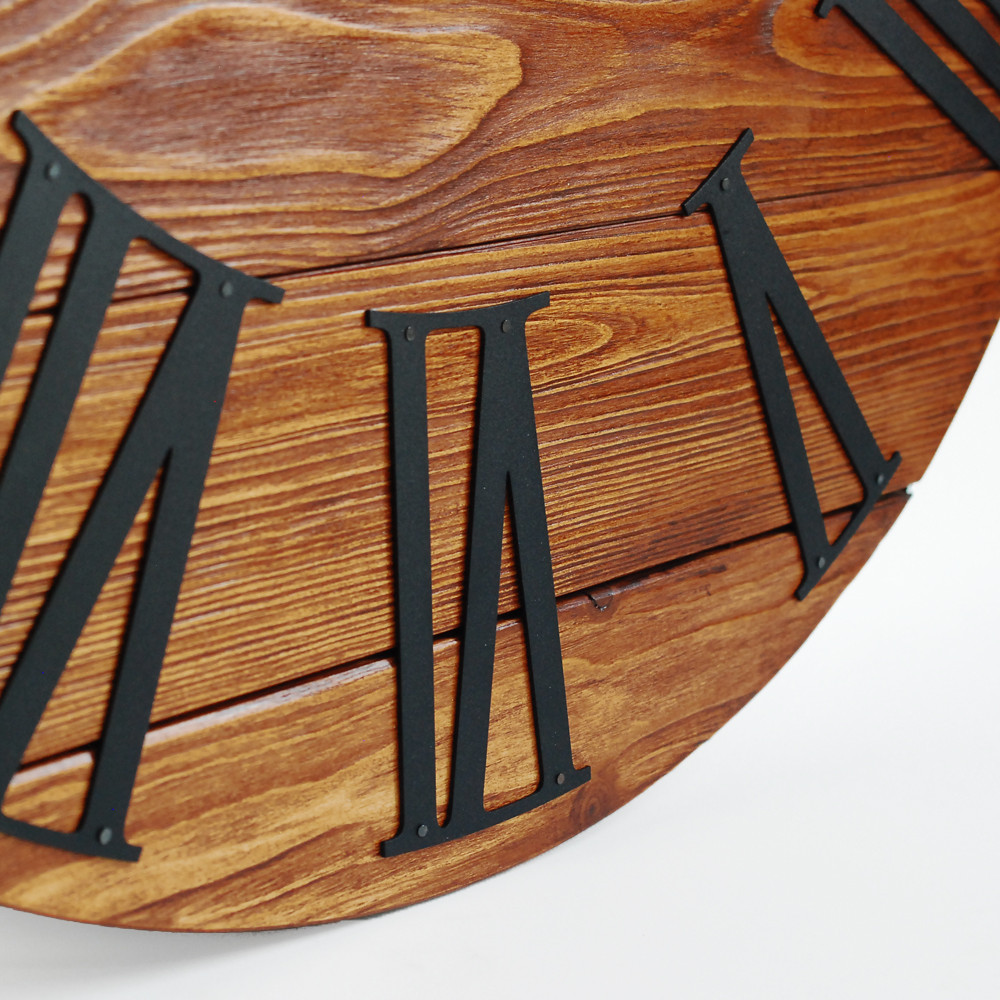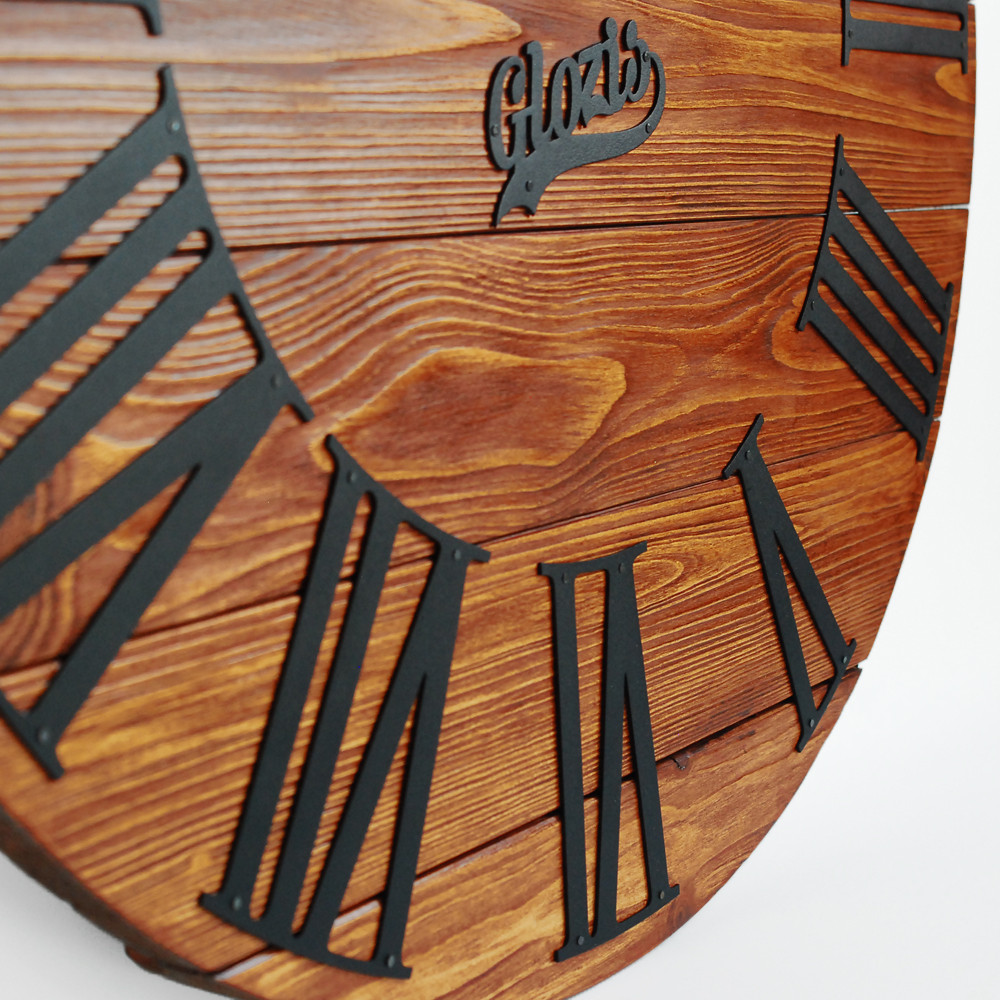 Дерев'яний настінний годинник Glozis – це незвичайний тандем дерева та металу. Основа циферблату настінного годинника виготовлена з натурального дерева, завдяки чому має виразну текстуру, оброблена високоякісною екологічною пропиткою на олійній основі, яка надає колір та благородний сатиновий ефект деревині, захищаючи її від тріщин та вологи. Індикаторами циферблату є цифри, виготовлені з металу з порошковим покриттям. Годинник має безшумний кварцовий механізм. З тильного боку виріб оснащений надійним підвісом. Зверніть увагу! Кожен виріб унікальний і може трохи відрізнятися від представленого на фотографії, тому що кожен фрагмент дерева має свій неповторний малюнок. Годинник виготовляється на замовлення протягом 1-3 днів!