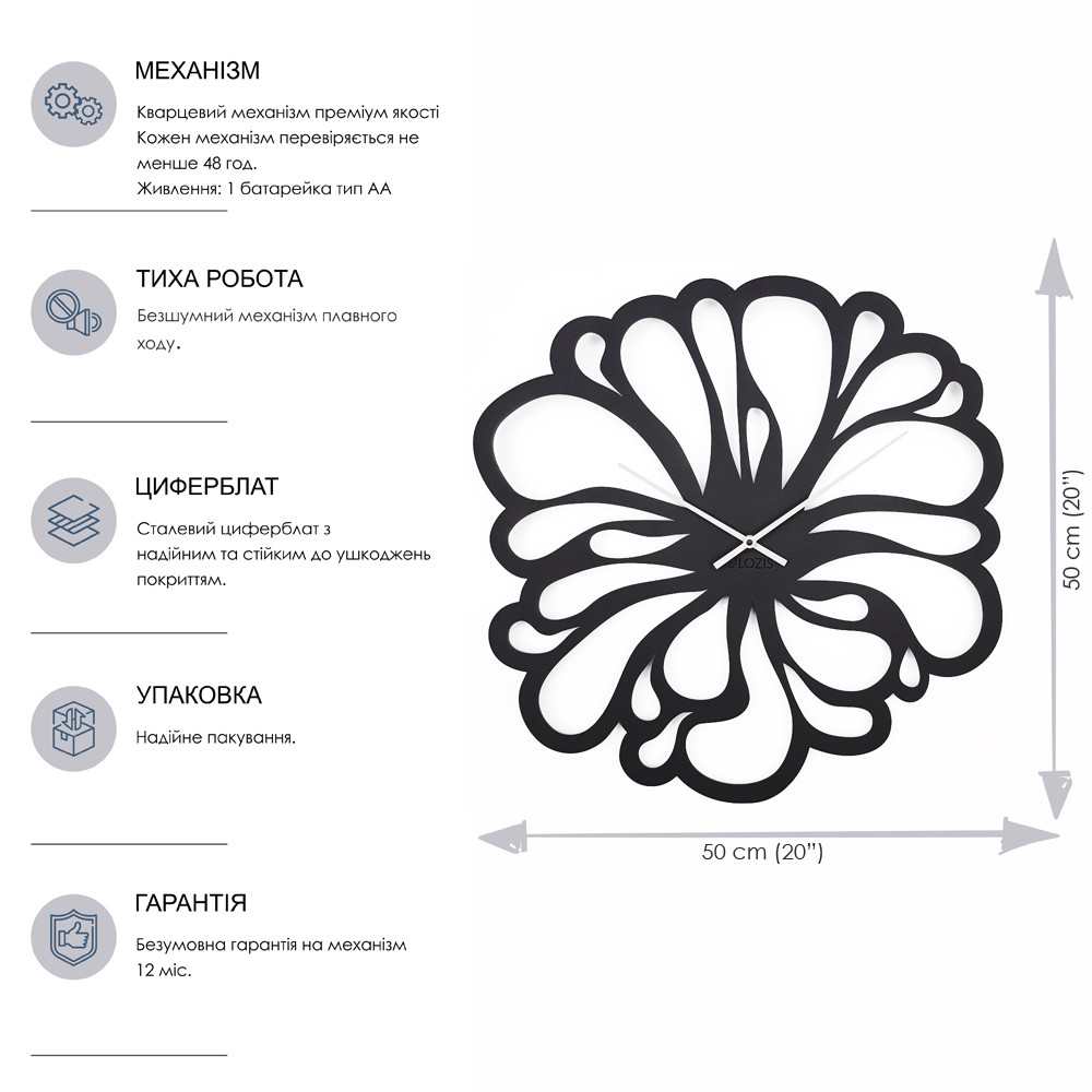 Оригінальний настінний годинник Glozis виконаний зі сталі. Порошкове покриття, яке гарантує однорідний і насичений колір циферблату, забезпечує максимальну екологічність продукції! Дизайнерський настінний годинник оснащений кварцовим безшумним годинниковим механізмом.