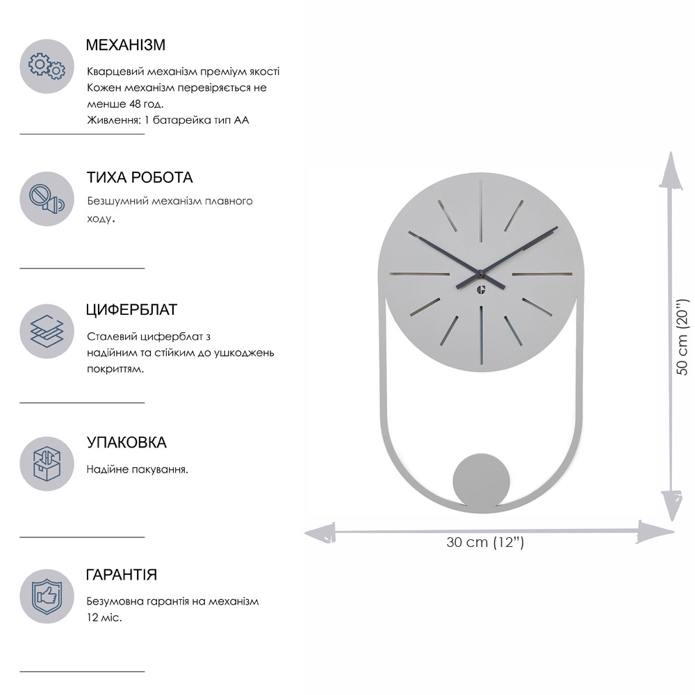 Оригінальний настінний годинник Glozis виконаний зі сталі. Порошкове покриття, яке гарантує однорідний і насичений колір циферблату, забезпечує максимальну екологічність продукції! Дизайнерський настінний годинник оснащений кварцовим безшумним годинниковим механізмом.