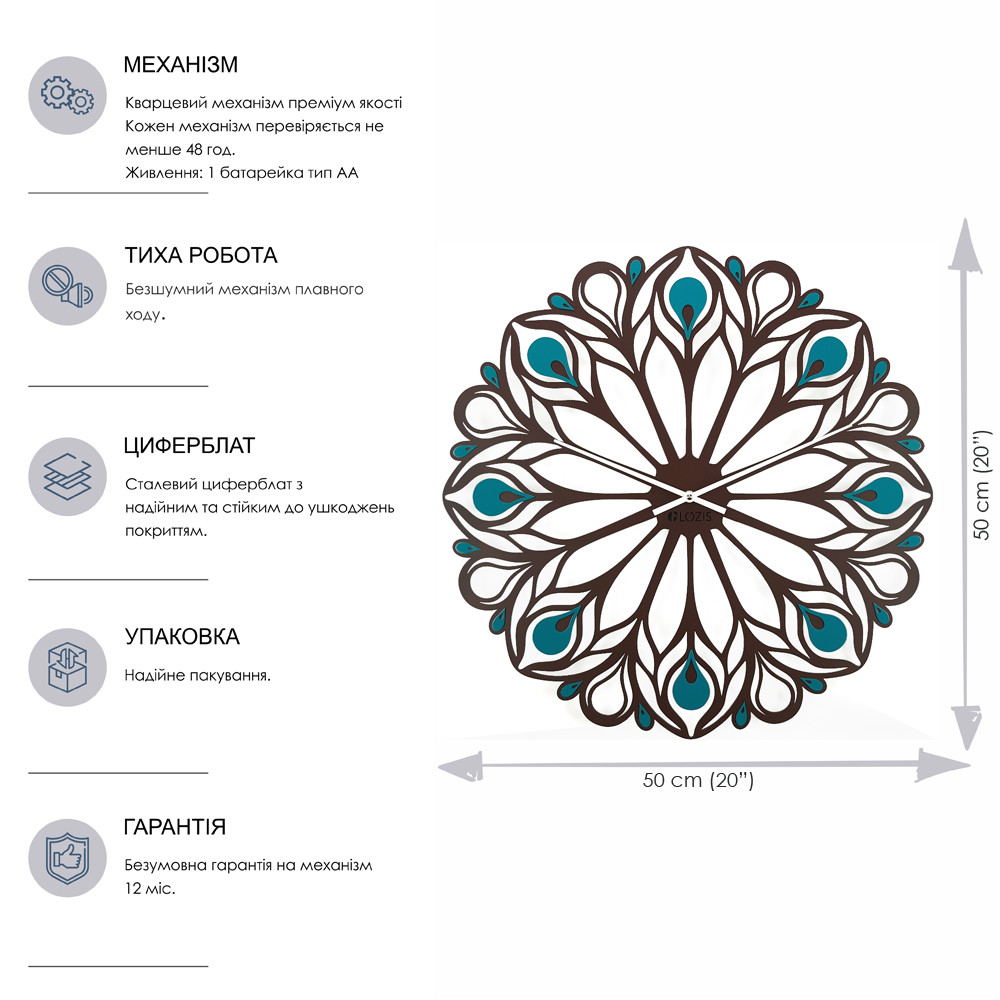 Оригінальний настінний годинник Glozis виконаний зі сталі. Порошкове покриття, яке гарантує однорідний і насичений колір циферблату, забезпечує максимальну екологічність продукції! Дизайнерський настінний годинник оснащений кварцовим безшумним годинниковим механізмом.