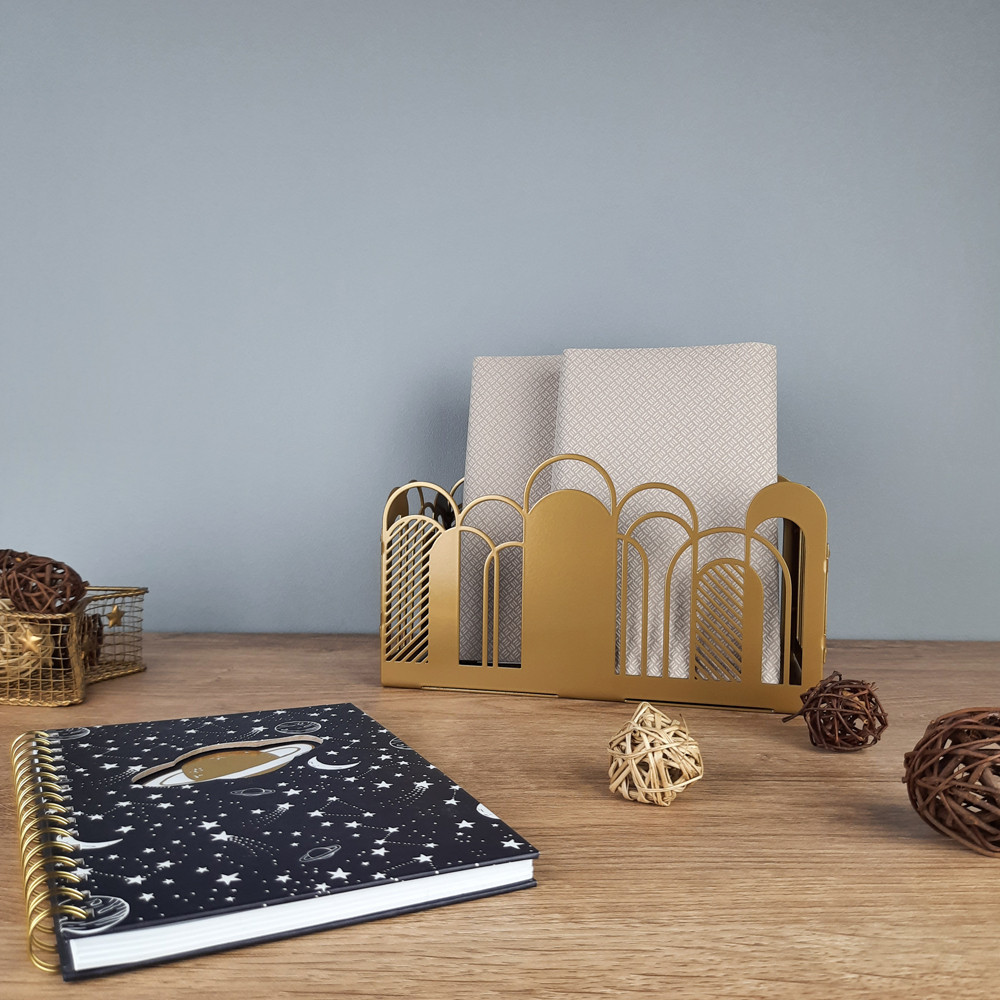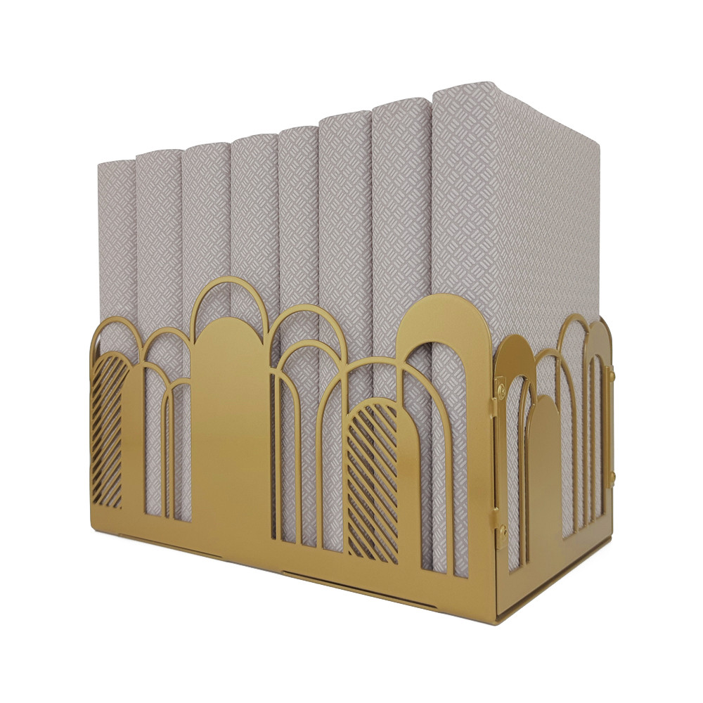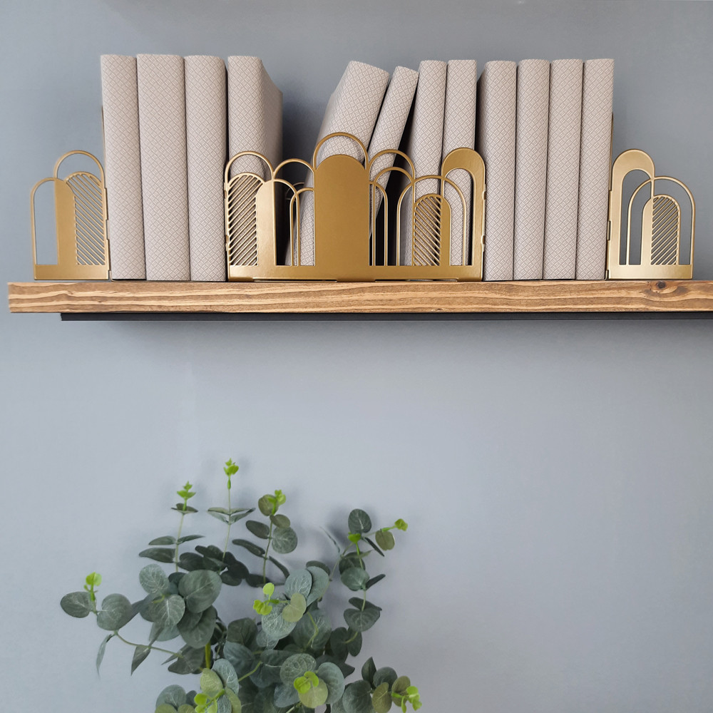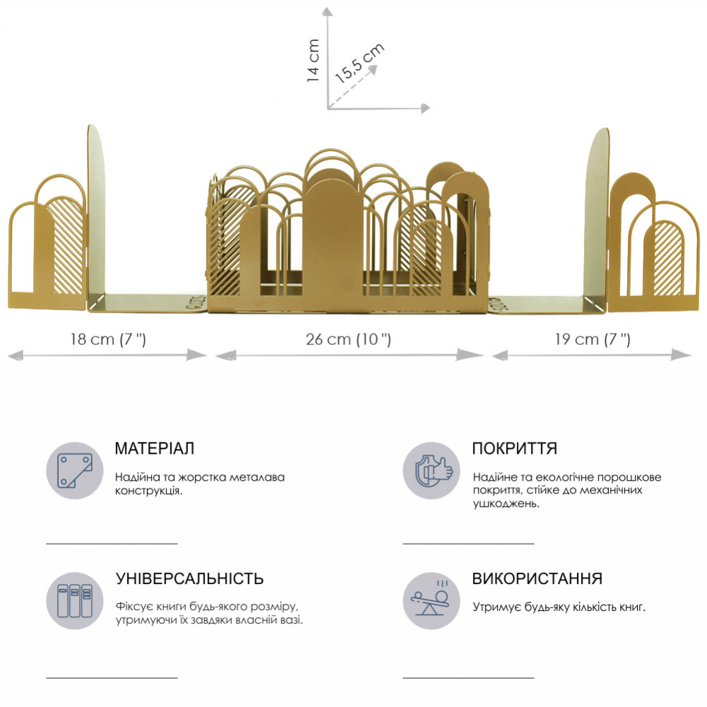 Дана конструкція упорів для книг із трьох секцій з легкістю виконує свою функцію тримачів для книг практично будь-якого формату та кількості, фіксуючи їх у потрібному положенні. Центральна частина універсальна і підходить не тільки для зберігання книг, журналів та щоденників, а й може бути своєрідним органайзером.
