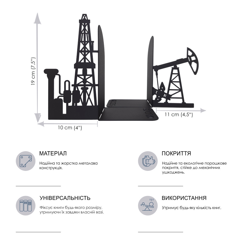 У комплекті пара підставок. Упори для книг Glozis виконані із сталі. Надійне фарбування з однорідним та насиченим кольором. Тримачі для книг - стануть родзинкою вашого інтер'єру та просто чудовим подарунком.