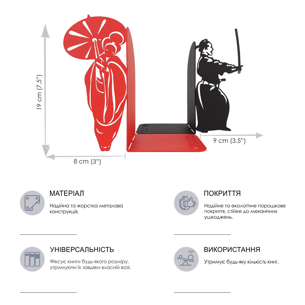 У комплекті пара підставок. Упори для книг Glozis виконані із сталі. Надійне фарбування з однорідним та насиченим кольором. Тримачі для книг - стануть родзинкою вашого інтер'єру та просто чудовим подарунком.