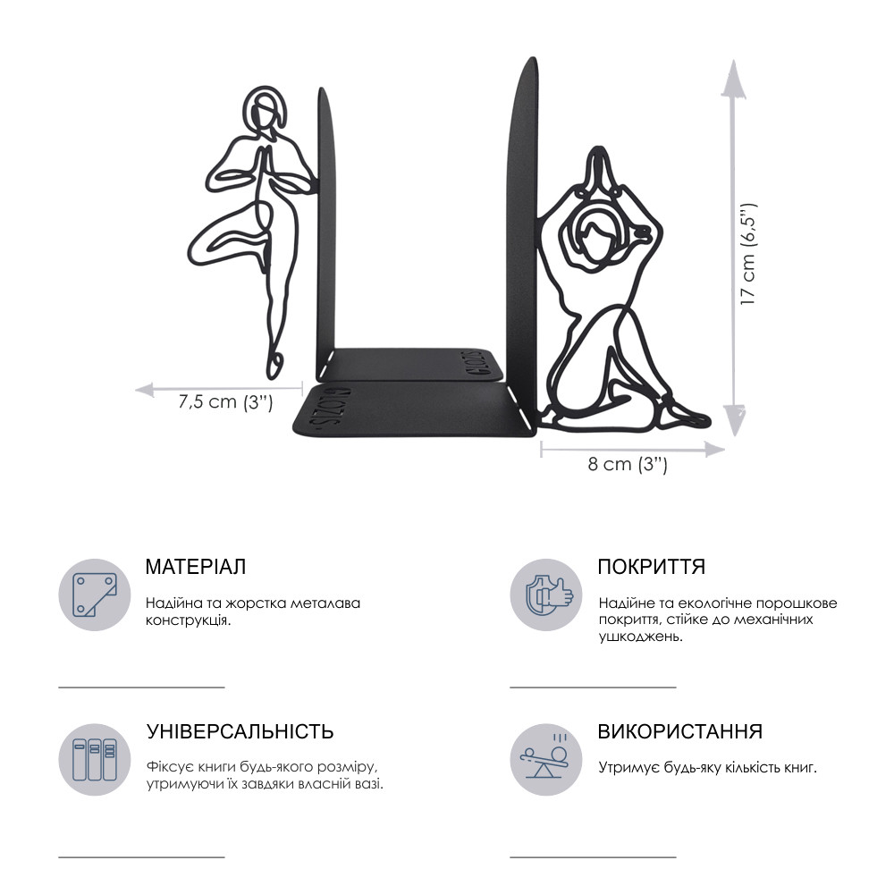 У комплекті пара підставок. Упори для книг Glozis виконані із сталі. Надійне фарбування з однорідним та насиченим кольором. Тримачі для книг - стануть родзинкою вашого інтер'єру та просто чудовим подарунком.