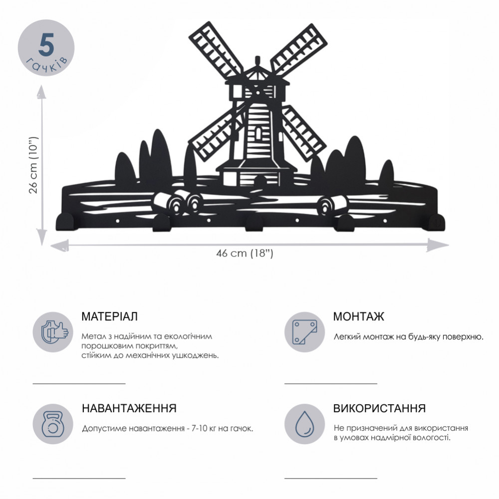 Порошкове покриття гарантує рівномірний колір вішака, а також стійкість до механічних пошкоджень. Вішалки і гачки поставляються з усією необхідною фурнітурою для монтажу.Характеристики