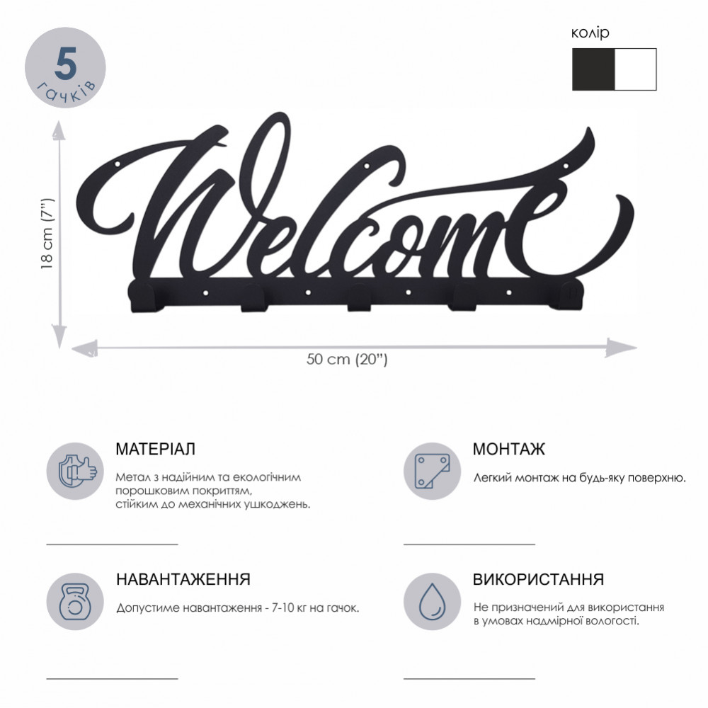 Порошкове покриття гарантує рівномірний колір вішака, а також стійкість до механічних пошкоджень. Вішалки і гачки поставляються з усією необхідною фурнітурою для монтажу.Характеристики