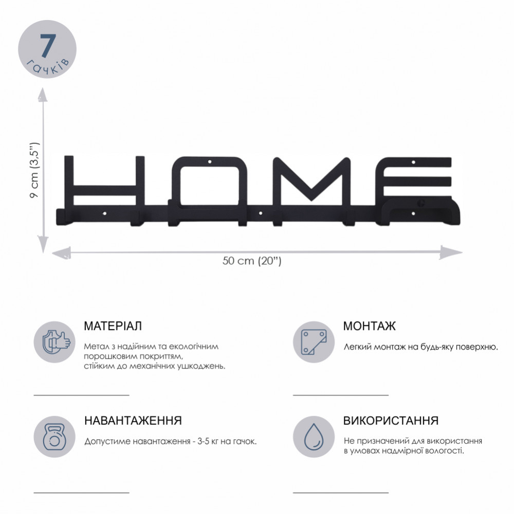 Порошкове покриття гарантує рівномірний колір вішака, а також стійкість до механічних пошкоджень. Вішалки і гачки поставляються з усією необхідною фурнітурою для монтажу.Характеристики