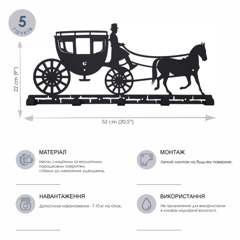 Порошкове покриття гарантує рівномірний колір вішака, а також стійкість до механічних пошкоджень. Вішалки і гачки поставляються з усією необхідною фурнітурою для монтажу.Характеристики