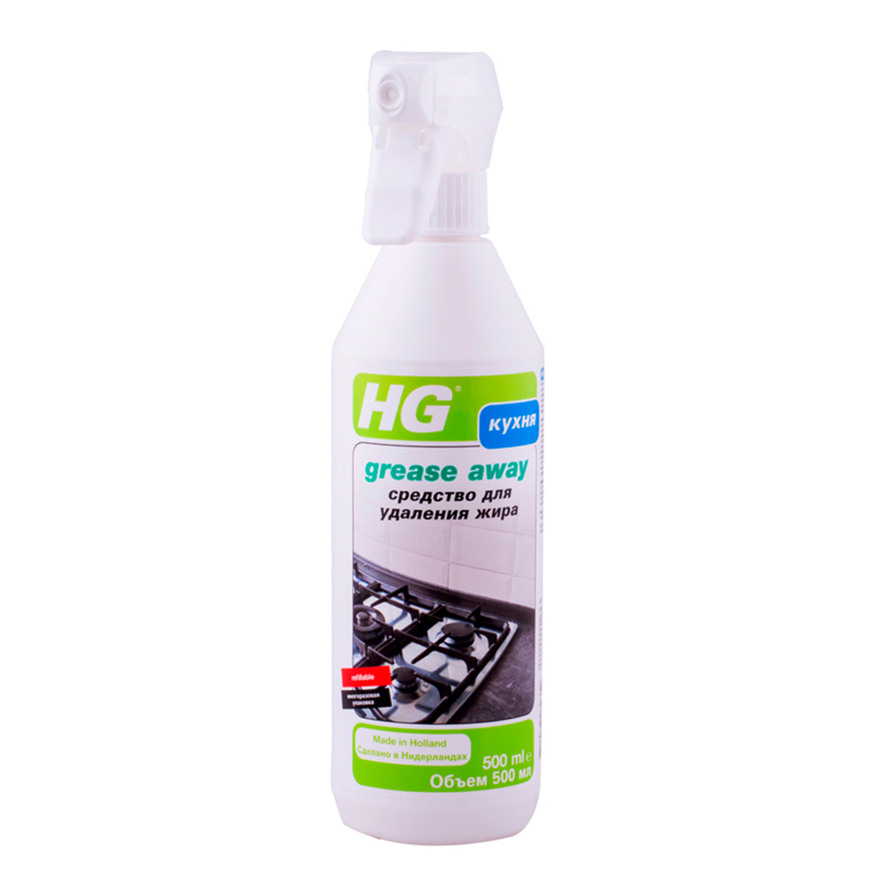 Засіб для видалення жиру 500мл HG (128050161) Для плит та конфорок, керамічної плитки, металевих, пластикових, емальованих і алюмінієвих поверхонь.Засіб швидко і легко очищає жир, масло, розлучення і сліди від пальців з поверхні плити, конфорок, витяжки над плитою, каструль, нержавіючої сталі, емальованих і алюмінієвих поверхонь. Ефективно впливає на застарілі забруднення і при постійному застосуванні перешкоджає появі нових.